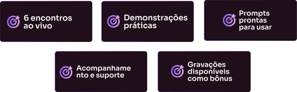 ✅Aceleração real de carreira, aprendendo a usar IA para economizar tempo e ganhar mais por produtividade.